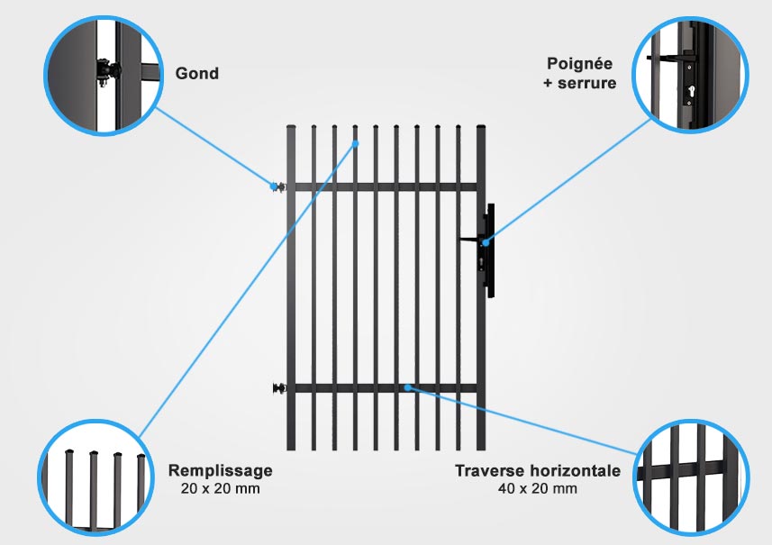 Idéal pour fermer votre propriété, le portillon classic Savio offre un excellent rapport qualité prix. Sa finition classic à barreaux offre une grande robustesse ainsi qu'une parfaite tenue dans le temps. Il ne nécessitera aucun entretien et résistera parfaitement aux conditions climatiques les plus défavorables (pluie, gel, neige, soleil...). Composé de profils en acier traité thermolaqués, sa durée de vie sera bien supérieure à celle d'un portillon pvc ou bois