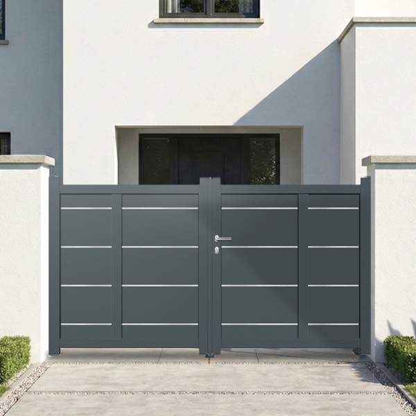 Idéal pour fermer et oculter votre propriété, ce portail aluminium design offre un excellent rapport qualité prix, il allie une grande robustesse et une parfaite tenue dans le temps. Il ne nécessitera aucun entretien et résistera parfaitement aux conditions climatiques les plus défavorables (pluie, gel, neige, soleil...). Composé de profils aluminium thermolaqués et panneaux aluminium double paroie injectés de mousse de polyuréthane 16 mm, sa durée de vie sera bien supérieur à celle d'un portail pvc ou bois