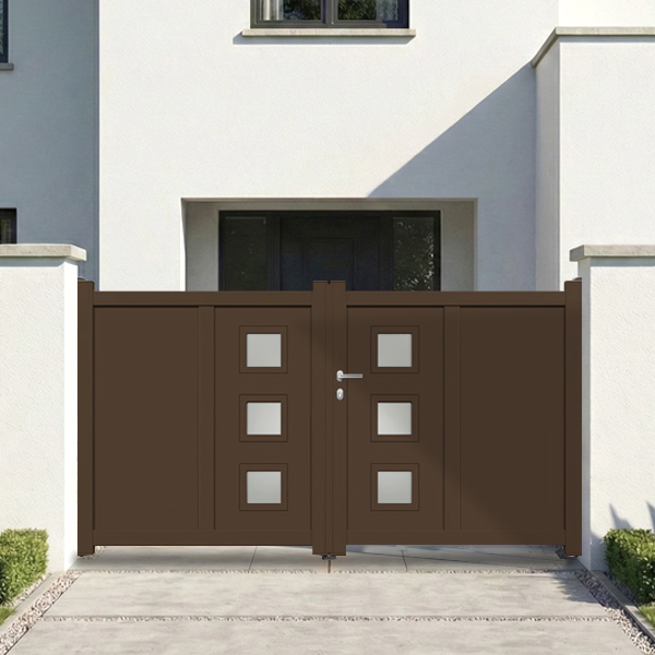 Idéal pour fermer et oculter votre propriété, ce portail aluminium design offre un excellent rapport qualité prix, il allie une grande robustesse et une parfaite tenue dans le temps. Il ne nécessitera aucun entretien et résistera parfaitement aux conditions climatiques les plus défavorables (pluie, gel, neige, soleil...). Composé de profils aluminium thermolaqués et panneaux aluminium double paroie injectés de mousse de polyhurétane 16 mm, sa durée de vie sera bien supérieur à celle d'un portail pvc ou bois