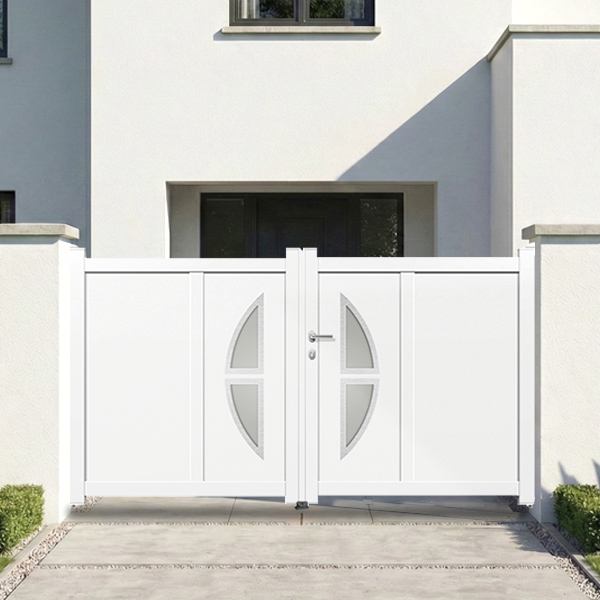 Idéal pour fermer et oculter votre propriété, ce portail aluminium design offre un excellent rapport qualité prix, il allie une grande robustesse et une parfaite tenue dans le temps. Il ne nécessitera aucun entretien et résistera parfaitement aux conditions climatiques les plus défavorables (pluie, gel, neige, soleil...). Composé de profils aluminium thermolaqués et panneaux aluminium double paroi injectés de mousse de polyuréthane 16 mm et éllipses inox et verres dépolis, sa durée de vie sera bien supérieur à celle d'un portail pvc ou bois