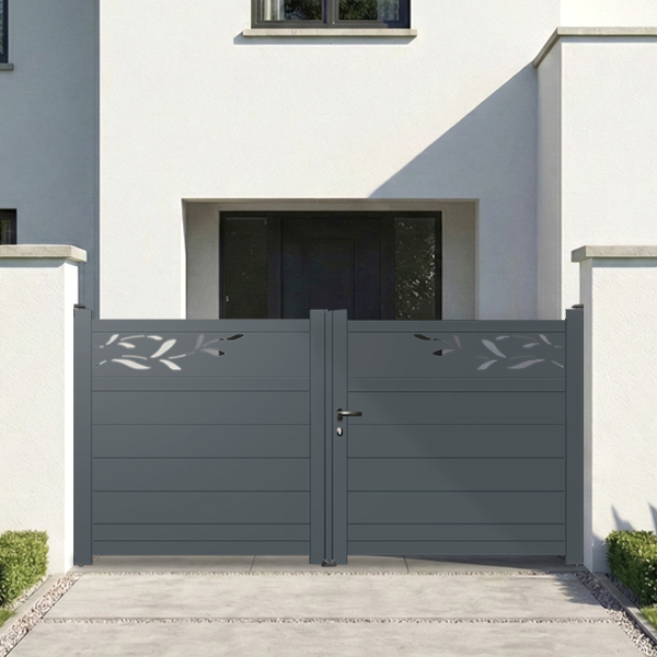 Portail aluminium droit plein à motif florale Jasmin-H