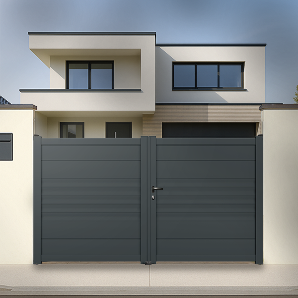 Ce portail en aluminium sur mesure offre un excellent rapport qualité-prix. Disponible en version tout aluminium ou avec détails en inox, il combine robustesse et élégance. Résistant aux intempéries (pluie, gel, neige, soleil), il ne nécessite aucun entretien et a une durée de vie bien supérieure à celle des portails en PVC ou bois.