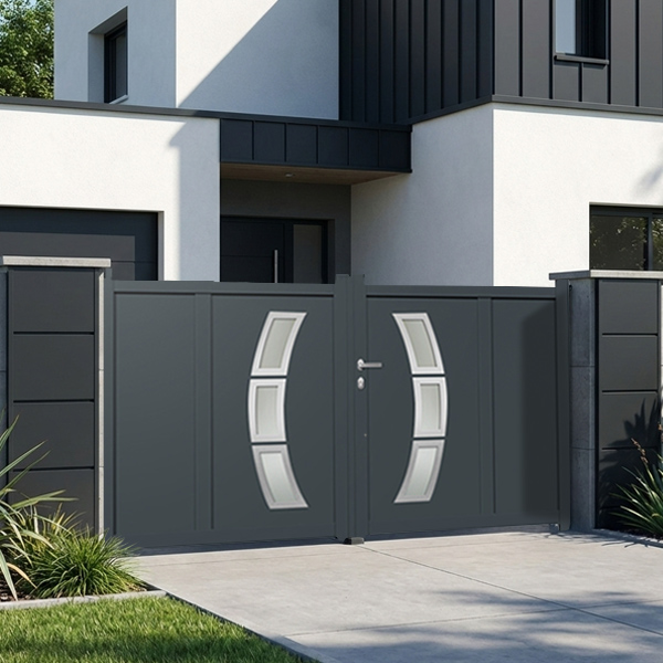 Portail aluminium battant plein DS19 avec motorisation intégrée :