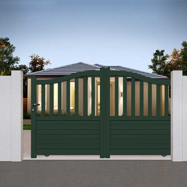 Portail aluminium coulissant chapeau de gendarme semi-ajouré: