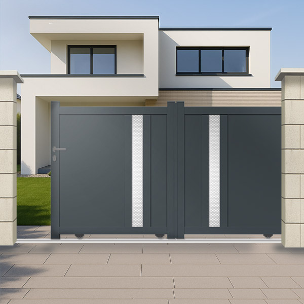 Idéal pour fermer votre propriété, ce portail aluminium coulissant moderne MD04 offre un excellent rapport qualité prix, il allie une grande robustesse et une parfaite tenue dans le temps. Il ne nécessitera aucun entretien et résistera parfaitement aux conditions climatiques les plus défavorables (pluie, gel, neige, soleil...). Composé de profils aluminium thermolaqués sa durée de vie sera bien supérieur à celle d'un portail pvc ou bois