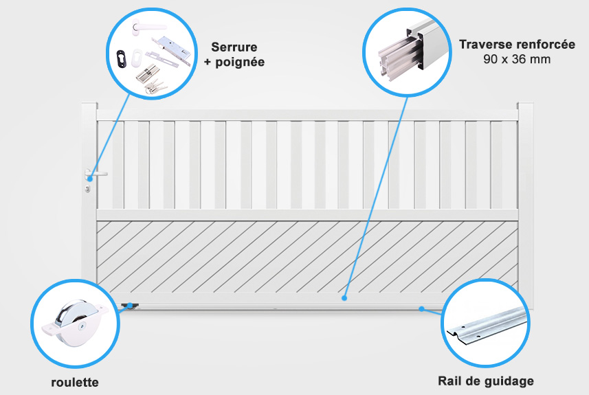 Idéal pour fermer votre propriété, ce portail aluminium offre un excellent rapport qualité prix, il allie une grande robustesse et une parfaite tenue dans le temps. Il ne nécessitera aucun entretien et résistera parfaitement aux conditions climatiques les plus défavorables (pluie, gel, neige, soleil...). Composé de profils aluminium thermolaqués sa durée de vie sera bien supérieure à celle d'un portail pvc ou bois