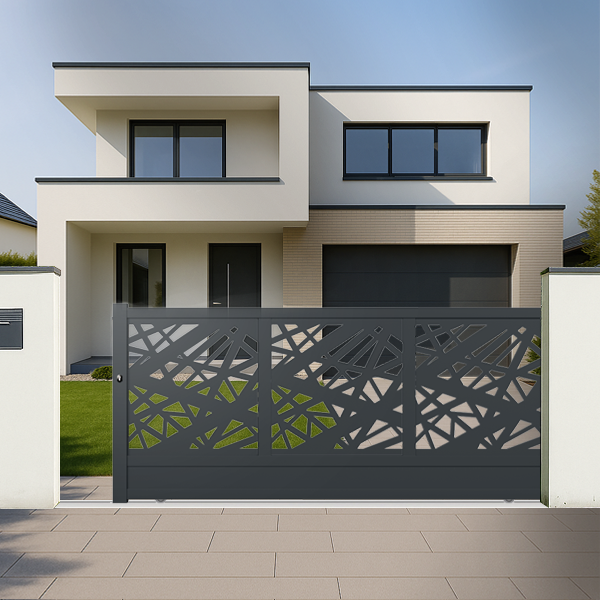 Idéal pour fermer votre propriété, ce portail aluminium coulissant à motifs végétaux de la gamme Lotus offre un excellent rapport qualité prix, il allie une grande robustesse et une parfaite tenue dans le temps. Il ne nécessitera aucun entretien et résistera parfaitement aux conditions climatiques les plus défavorables (pluie, gel, neige, soleil...). Composé de profils aluminium thermolaqués sablés sa durée de vie sera bien supérieur à celle d'un portail pvc ou bois