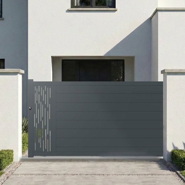 Portail aluminium coulissant semi-modern plein à motif floral Linea-V