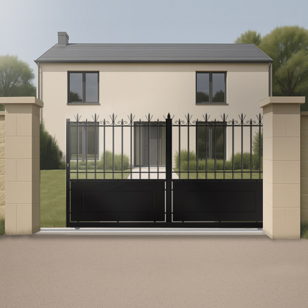 Le portail coulissant fer forgé Renoir allie robustesse, sécurité et esthétisme intemporel. Avec son design classique, son remplissage barreaudé et soubassement tôlé, il protège efficacement votre propriété tout en valorisant votre façade. Idéal en zone de vent fort, ce modèle est conçu pour durer grâce à une structure en acier reconnue pour sa résistance et sa longévité.
