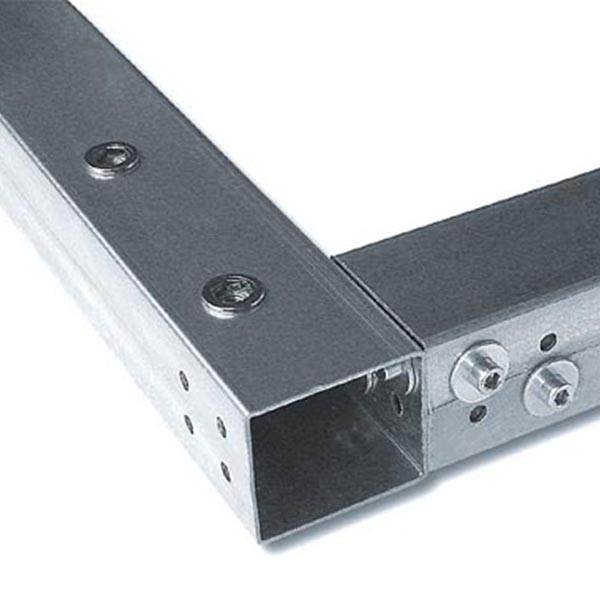 Cadre dormant sur 3 côtés en profils tubulaires rectangulaires d'acier avec rails de guidage