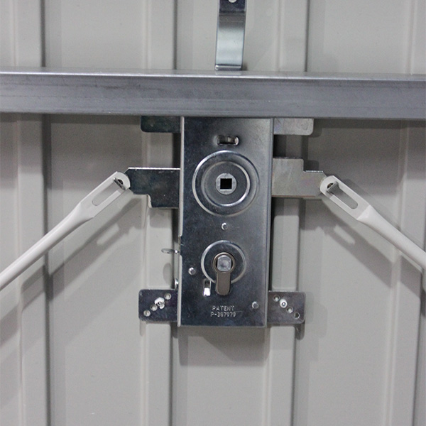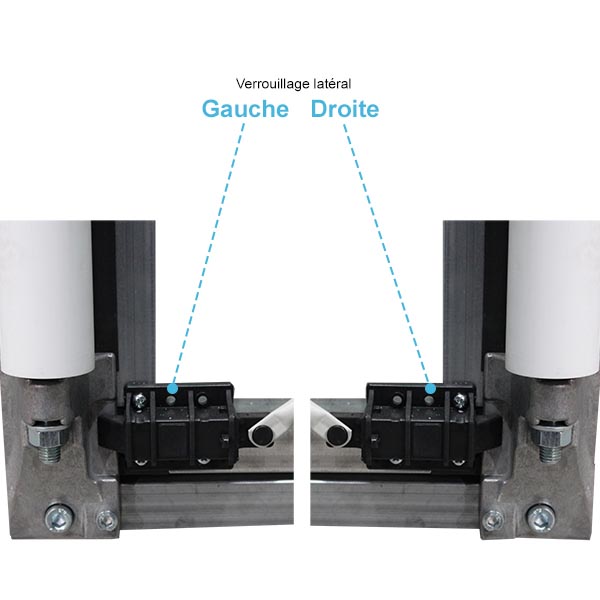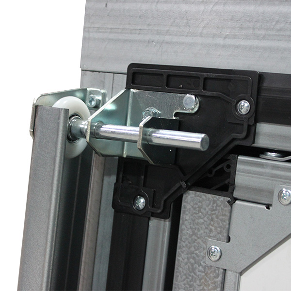 Tablier renforcé par 2 raidisseurs en acier avec joint de protection EPDM en partie basse, joints de recouvrement EPDM latéraux