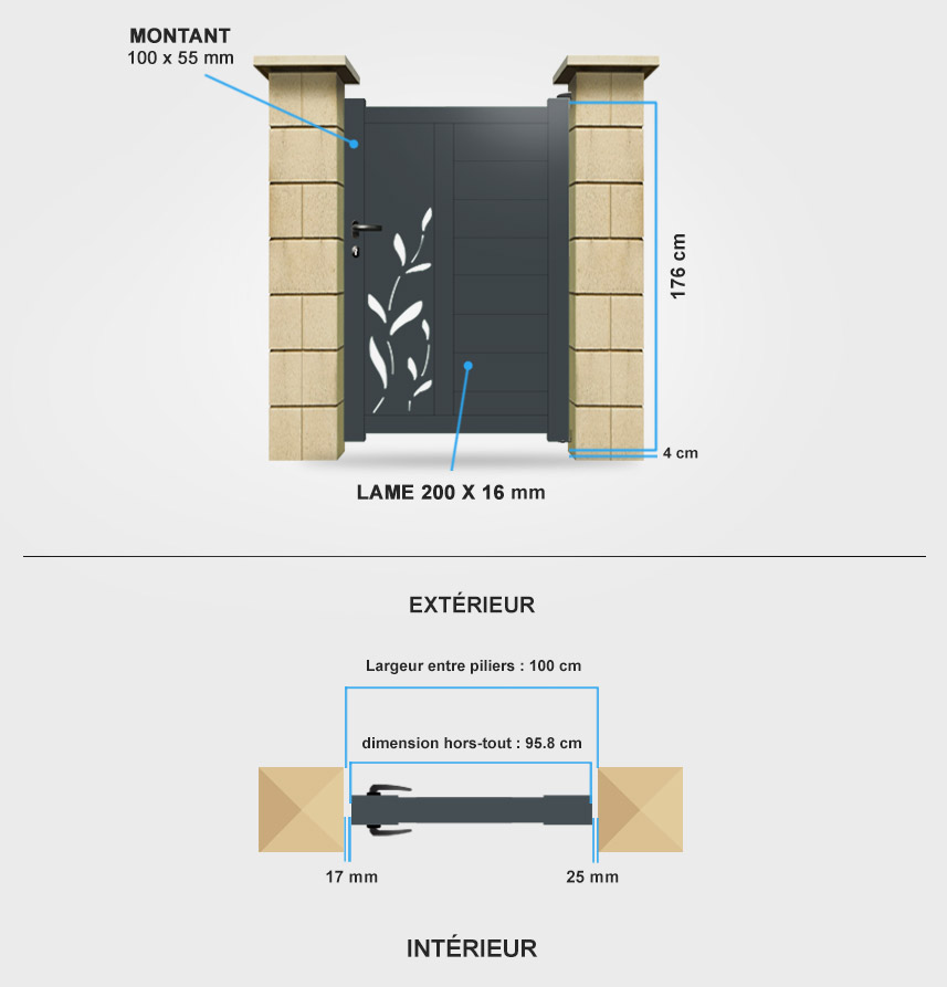 Idéal pour fermer votre propriété, ce portillon aluminium offre un excellent rapport qualité prix, il allie une grande robustesse et une parfaite tenue dans le temps. Il ne nécessitera aucun entretien et résistera parfaitement aux conditions climatiques les plus défavorables (pluie, gel, neige, soleil...). Composé de profils aluminium thermolaqués sa durée de vie sera bien supérieur à celle d'un portail pvc ou bois